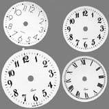 | QUADRANTI Quadranti in cartoncino plastificato. sfondo bianco = bi numeri romani = ro numeri classici = cl numeri moderni = mo diametro in mm = d |